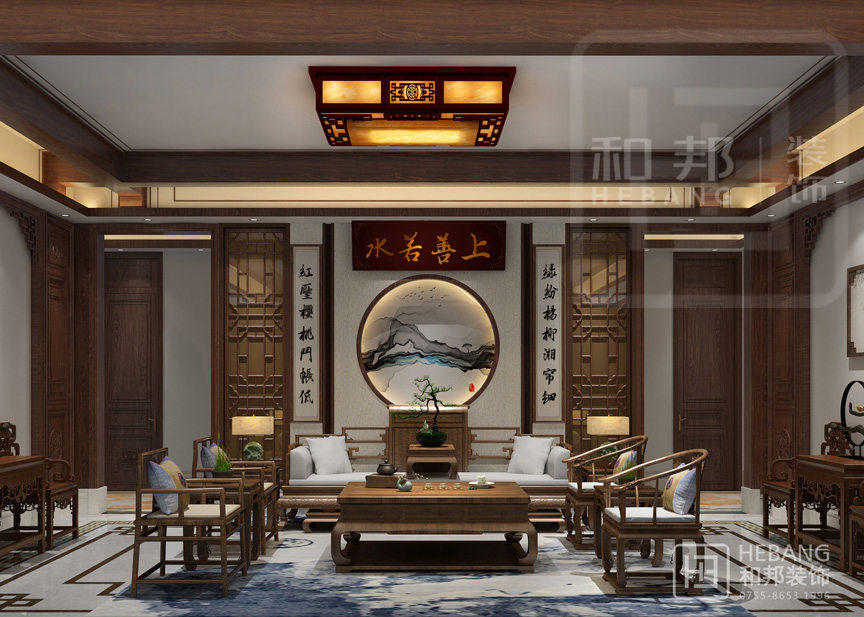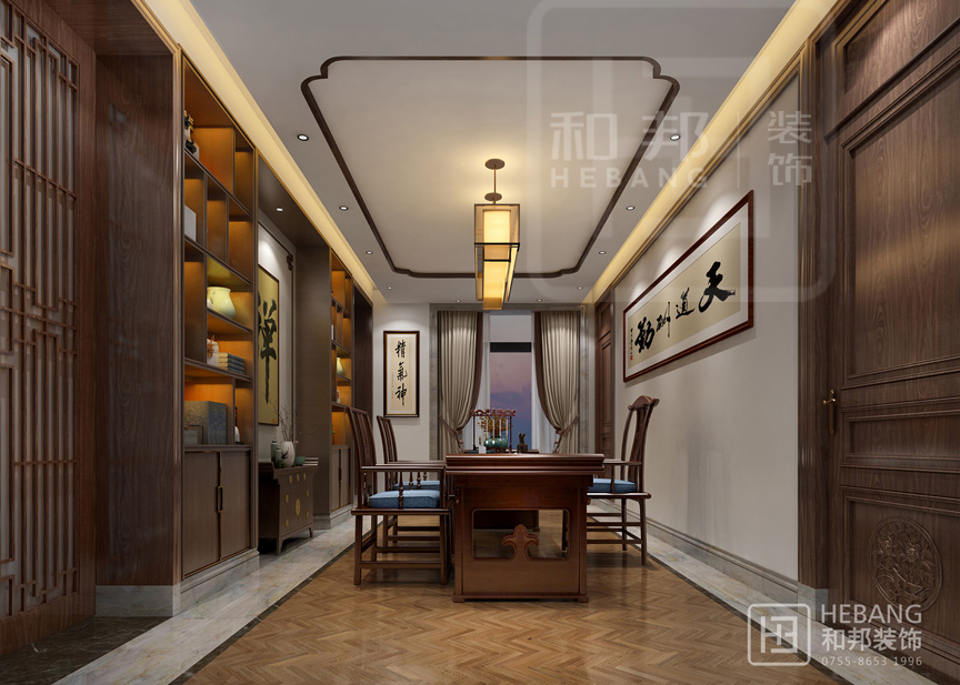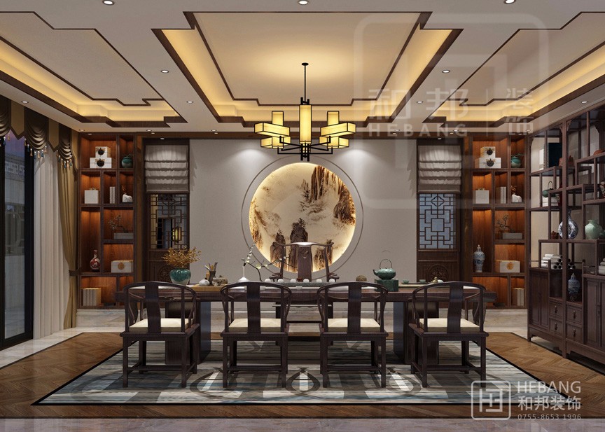 傳統的中式風格加上明快的現代風格,一個愉悅的空間、一種尊貴的生活、一方獨享的天地,都在這里尋求最合適的表達。