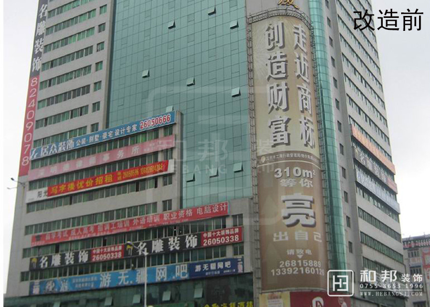 改造前廣告牌橫幅雜亂的亂掛著,改造后把所有廣告牌都歸納在轉角處,這樣既讓廣告顯得更加突出又使整棟樓看起來高端大氣。